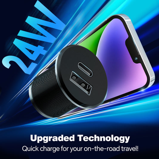 48W 12V USB Socket Outlet, USB C +USB A, Hole 1"(25mm)