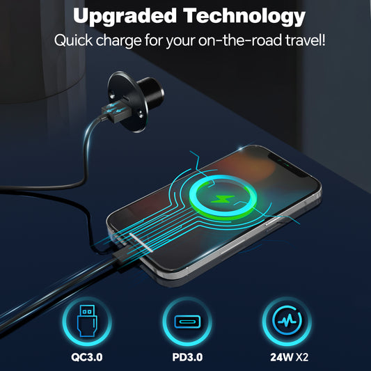 48W 12V USB Socket Outlet, PD3.0 30W+QC3.0 18W Built-in Switch& Blue Backlight