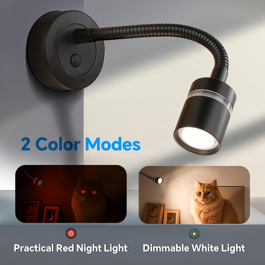 RV 12V LED Reading Light 4000K & Red Nightlight Built-in 20W Type-C Charger Flexible Gooseneck, Dimmable Bedside Lamp for Boat Motorhome Caravan, Hard-Wired Surface Mount