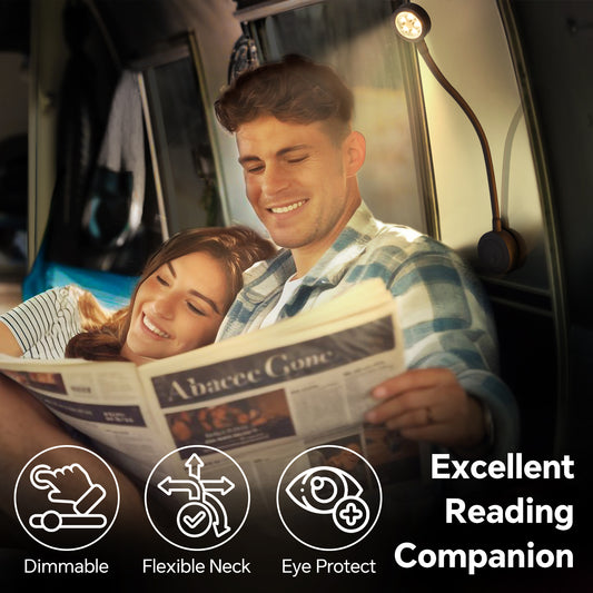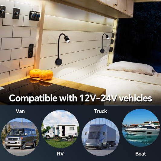 12V LED Reading Light RV Boat Flexible Gooseneck, for Camper Van Travel Trailer Truck, Built-in Press Dimmer Switch & Type-C Charger
