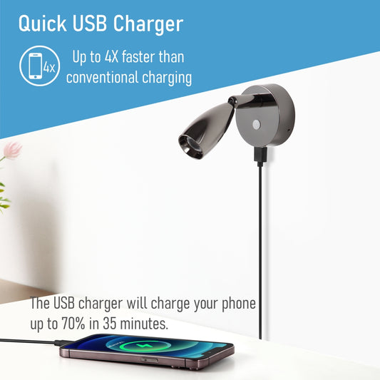 12V LED Reading Light, RV Bedside Swivel Wall Lamp Built-in High-Speed USB Charger, Frosted Acrylic Press Dimmer Switch, Black