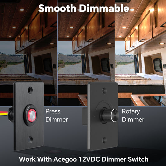 12V LED Puck Light, RV Boat 12V Recessed Ceiling Light Under Cabinet with Press Dimmer, Dimmable White Light & Blue Nightlight, 3-1/4” Full Aluminum 4-Pack