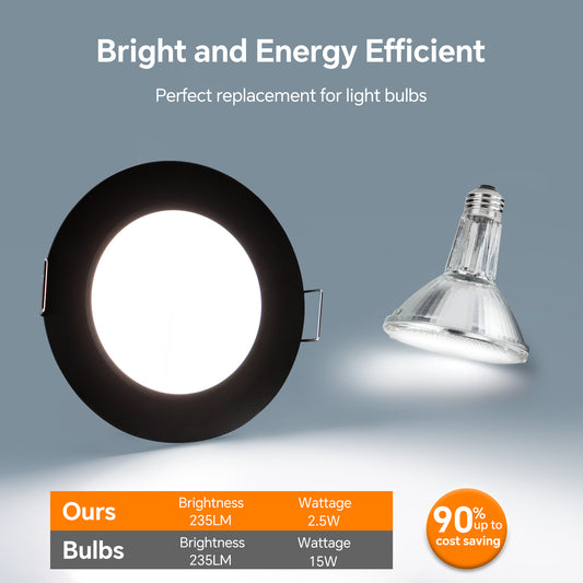 12V LED Puck Light, RV Boat Recessed LED Ceiling Light Overhead 3-1/4 Inch Flush Mount Full Aluminum CRI 90+ Black