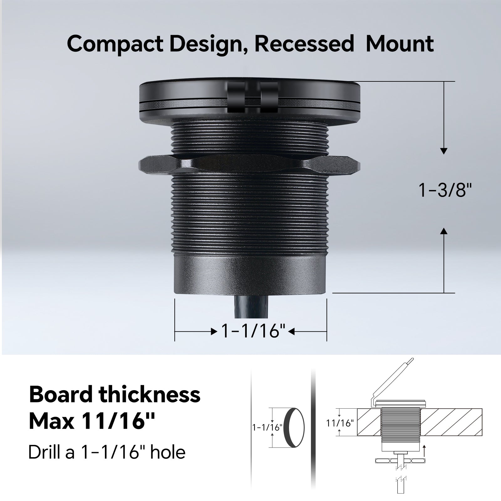 Standard Dimensions for Seamless Upgrades: Designed for campervans, boats, cars, trucks, and motorcycles, simply connect the pre-wired positive/negative terminals to the vehicle's electrical system. The standard cutout hole size is suitable for most OEM charging ports and cigarette lighter sockets, making it a worry-free upgrade for old cars or DIY projects. Mounting hole diameter: 27-32mm