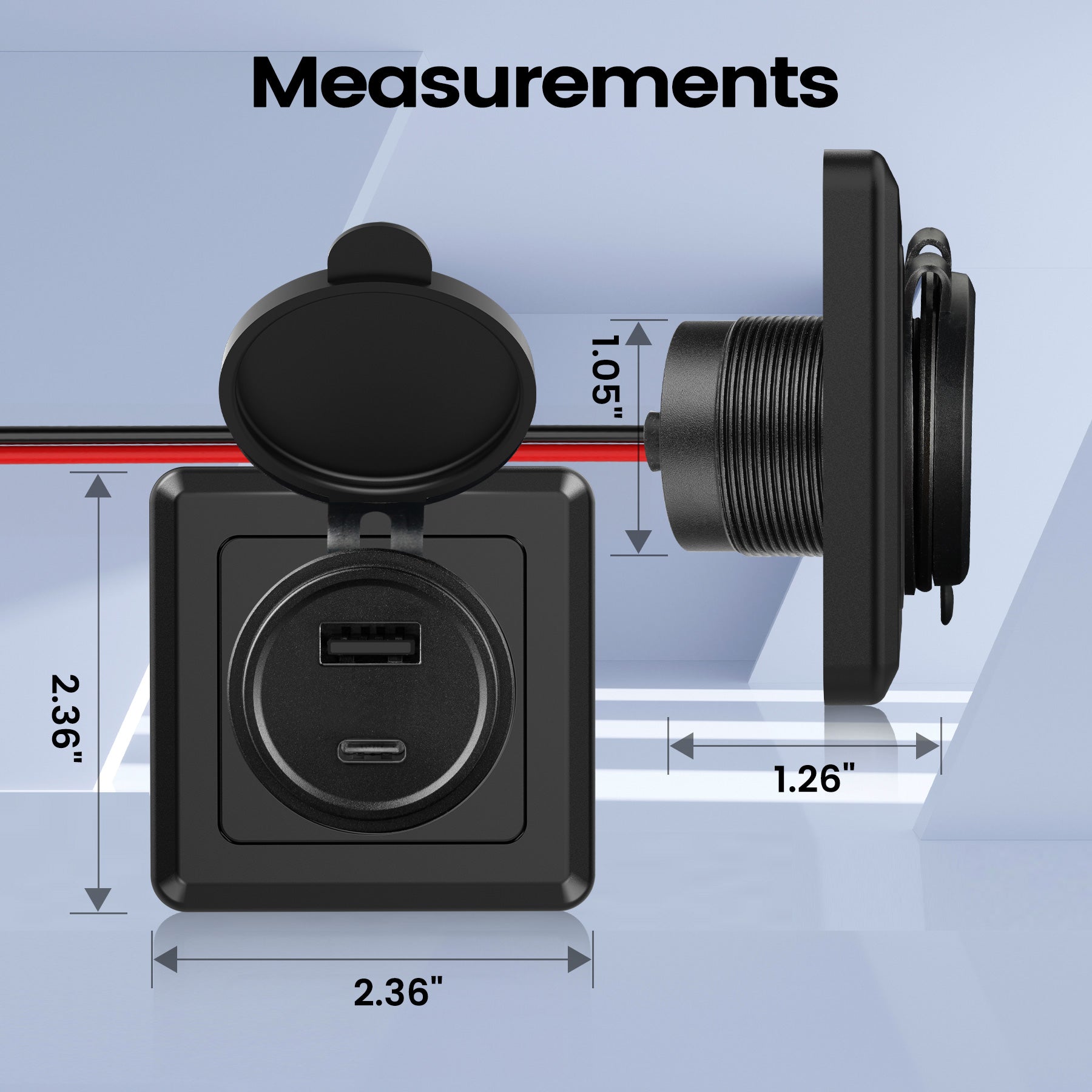 Rugged Aluminum Made USB Socket - This 12v usb c outlet is more durable than traditional plastic chargers and excellent heat transfer performance ensures stable and efficient charging power output performance all the time.